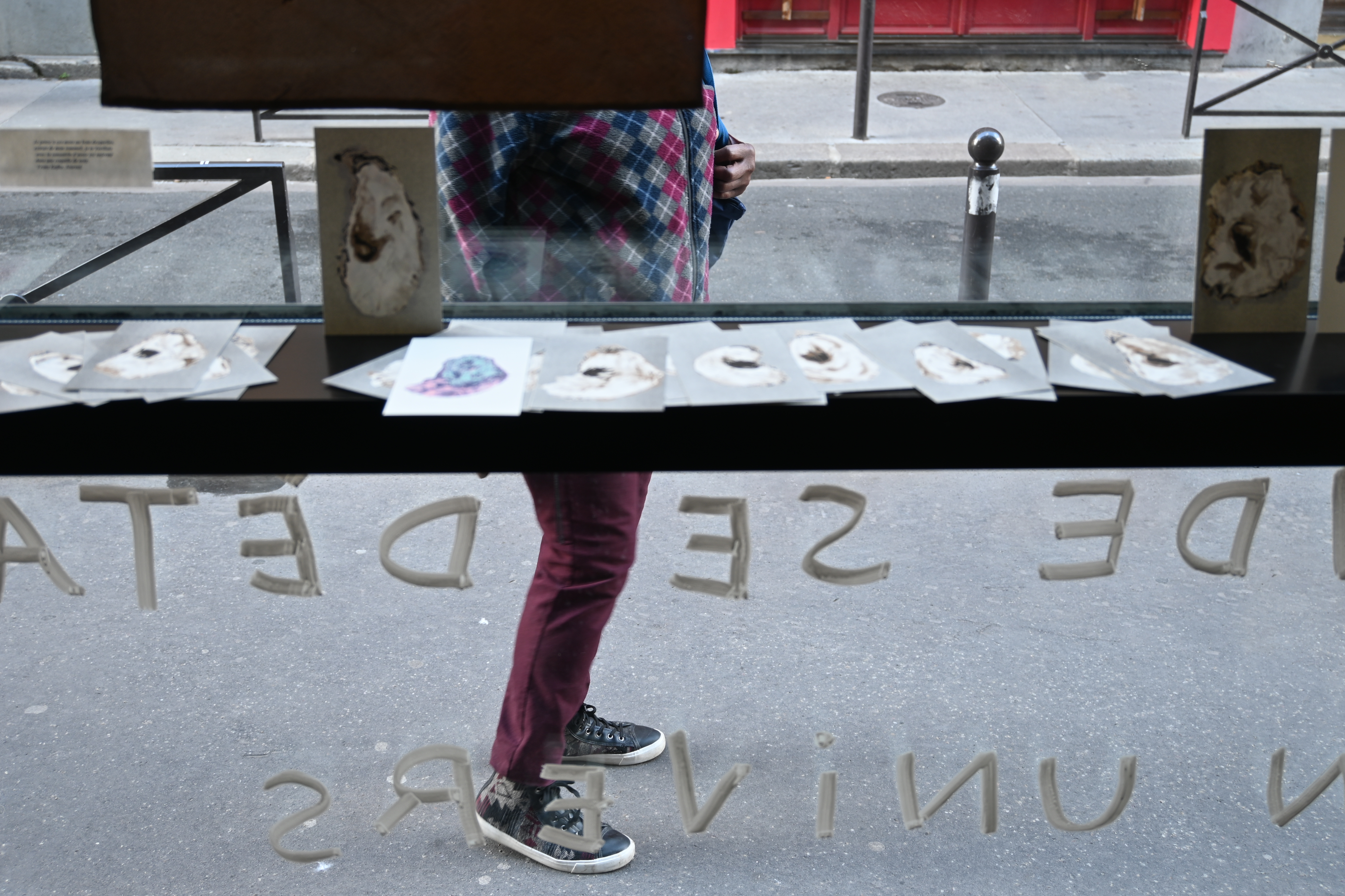 Installation Sentimental biography of an oyster, externs views up, interns views down;